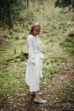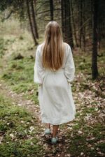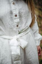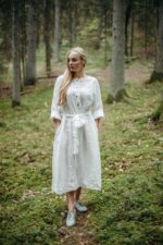 Designed with a modern fluid life in mind, this one-size dress is a true catch! Roomy cut, styled with a long linen belt (or without), looks great on any body shape. Combined with the possibility to wear the item buttons on the front or the back, the brilliant design allows you to discover this dress every day anew.In the pictures: