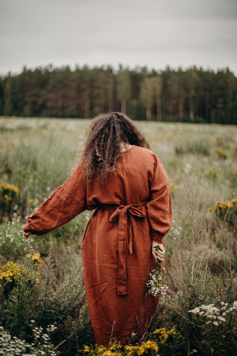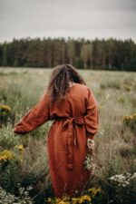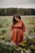 Designed with a modern fluid life in mind, this one-size dress is a true catch! Roomy cut, styled with a long linen belt (or without), looks great on any body shape. Combined with the possibility to wear the item buttons on the front or the back, the brilliant design allows you to discover this dress every day anew.