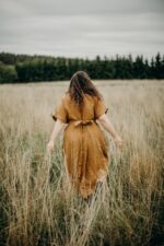 Designed with a modern fluid life in mind, this one-size dress is a true catch! Roomy cut, styled with a long linen belt (or without), looks great on any body shape. Combined with the possibility to wear the item buttons on the front or the back, the brilliant design allows you to discover this dress every day anew.In the pictures: