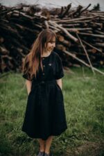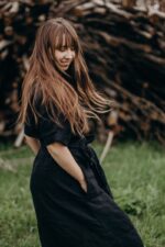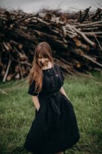 Designed with a modern fluid life in mind, this one-size dress is a true catch! Roomy cut, styled with a long linen belt (or without), looks great on any body shape. Combined with the possibility to wear the item buttons on the front or the back, the brilliant design allows you to discover this dress every day anew.