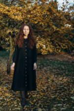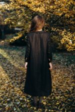 Our version of a classical collar dress. Long and soft, this comfy dress still keeps the classic elegant look. The added belt gives you a new silhouette, allowing the dress to adjust to your mood.In the pictures: