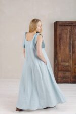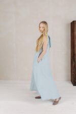 The dress Yvette is the best companion for all the romantic sunset strolls. Playful ribbon details on the shoulders make it adjustable to your comfort, and the flowy design lets you move freely wherever you are.In the pictures: