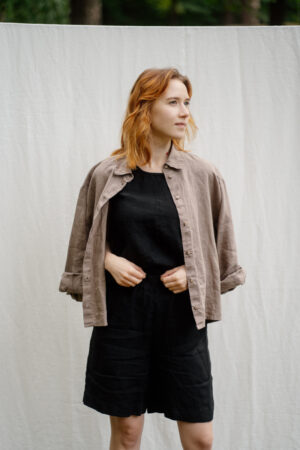 A beautiful duet of comfort and style is a signature feature of the shorts Loulou. An elastic band supporting only the back part of the waist keeps the front elegant, while the heavy-weight linen allows them to be worn all year round.In the pictures: