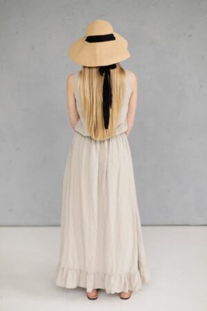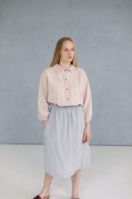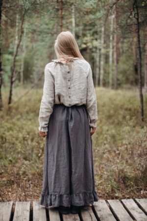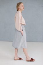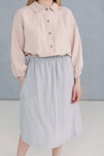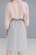 Made from soft linen, this midi linen skirt Elise feels incredibly smooth and pleasant on the skin. The skirt has a ruffled elastic waistband which adds an extra element of softness to the overall look.