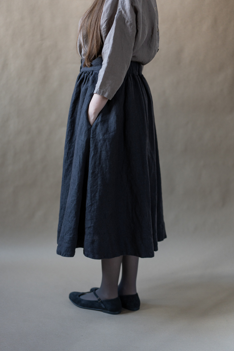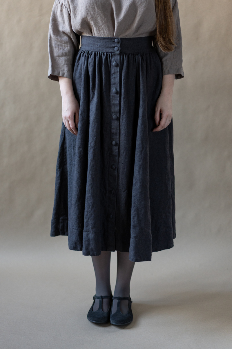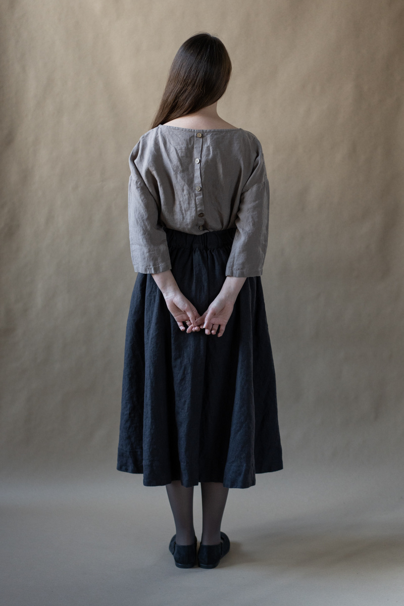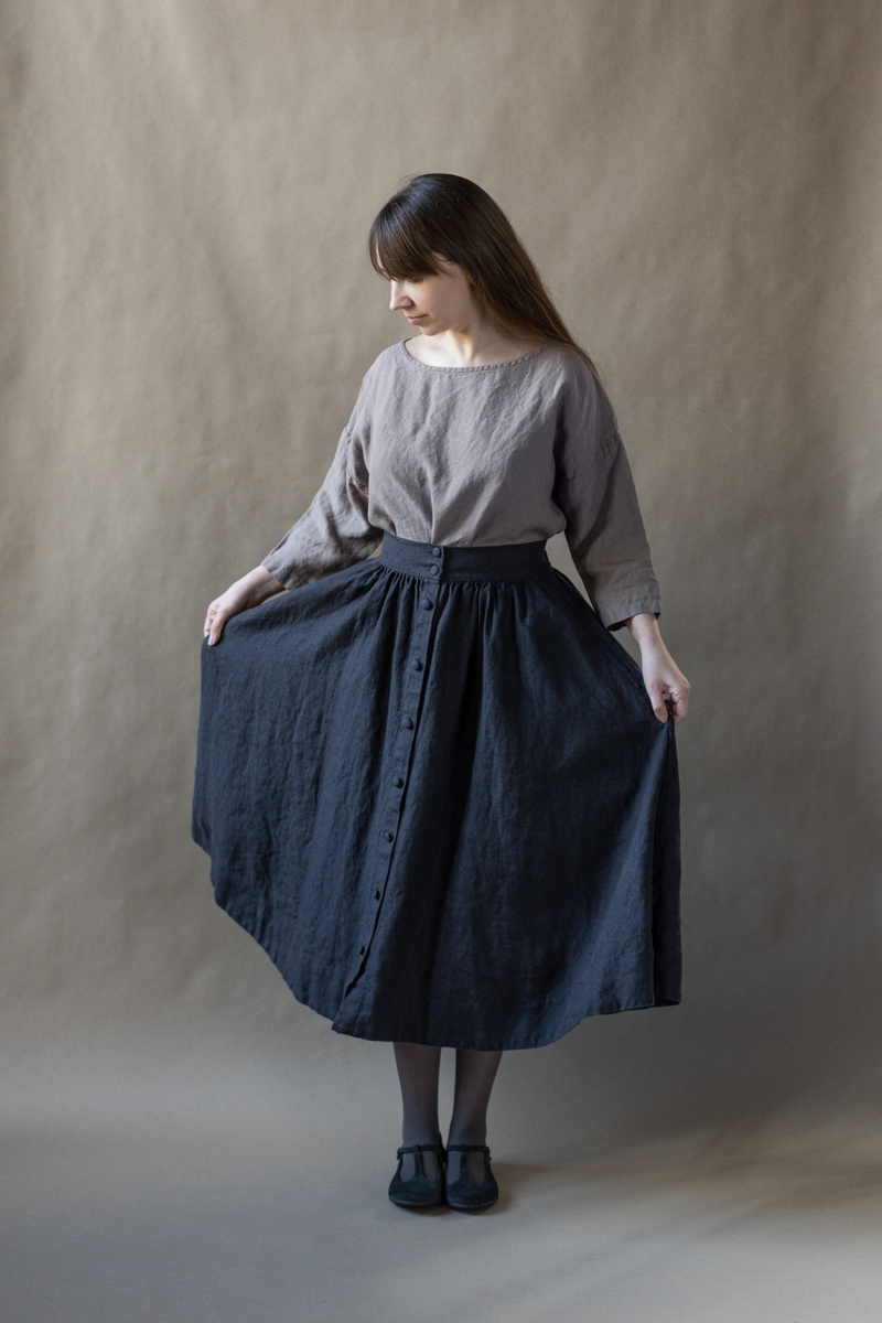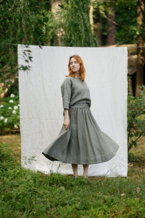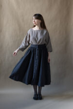 Easily matched, this buttoned mid-calf linen skirt is a must in your wardrobe. Pair this flowy skirt with a simple top or an elegant shirt to infuse a touch of autumn into your year-round wardrobe.