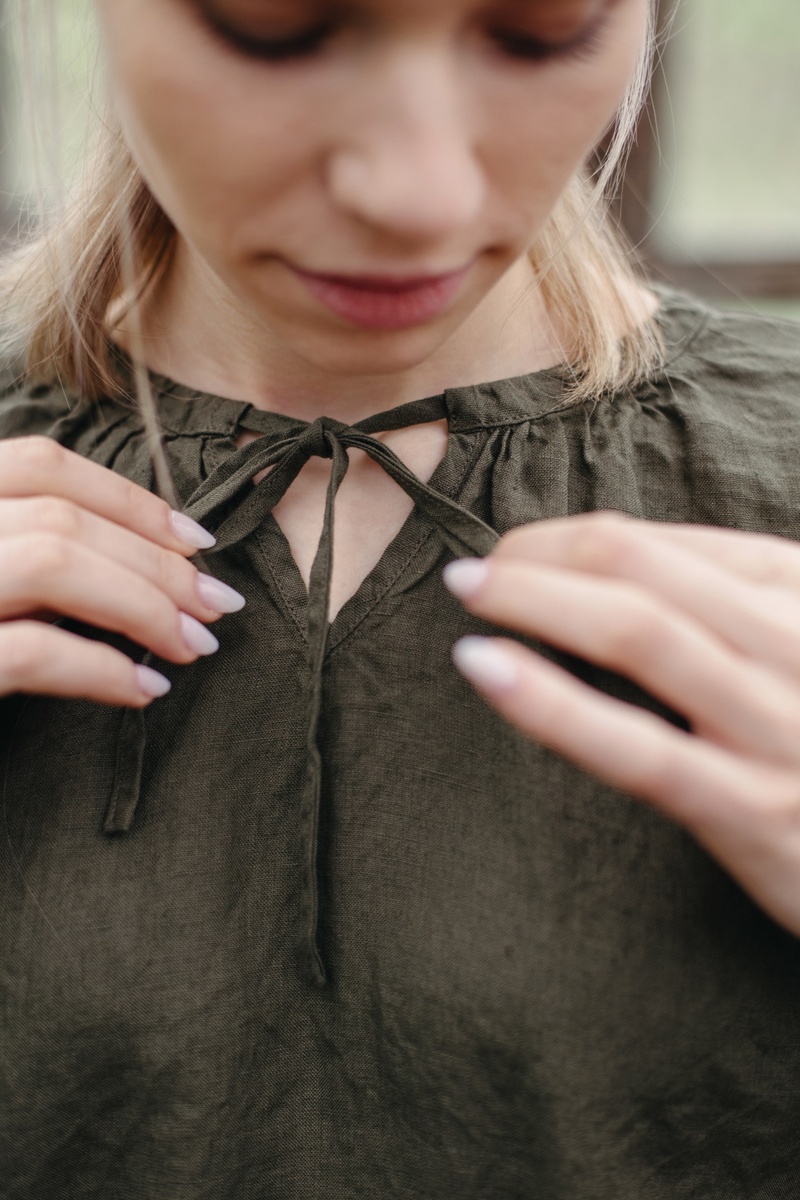The loose and comfy cut makes the Chloe Shirt perfect for chilly summer evenings. You can combine it with any bottom, as it is really easy to style. Intriguing ribbons at the front add a little charm to this tunic and allow you to wear it in many different ways.In the pictures: