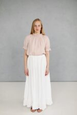Soft and lovely, this ruffle shirt is perfect for those who miss a bit of romance in their lives. It can be matched with any of our skirts or trousers and elevate a casual outfit in no time.In the pictures: